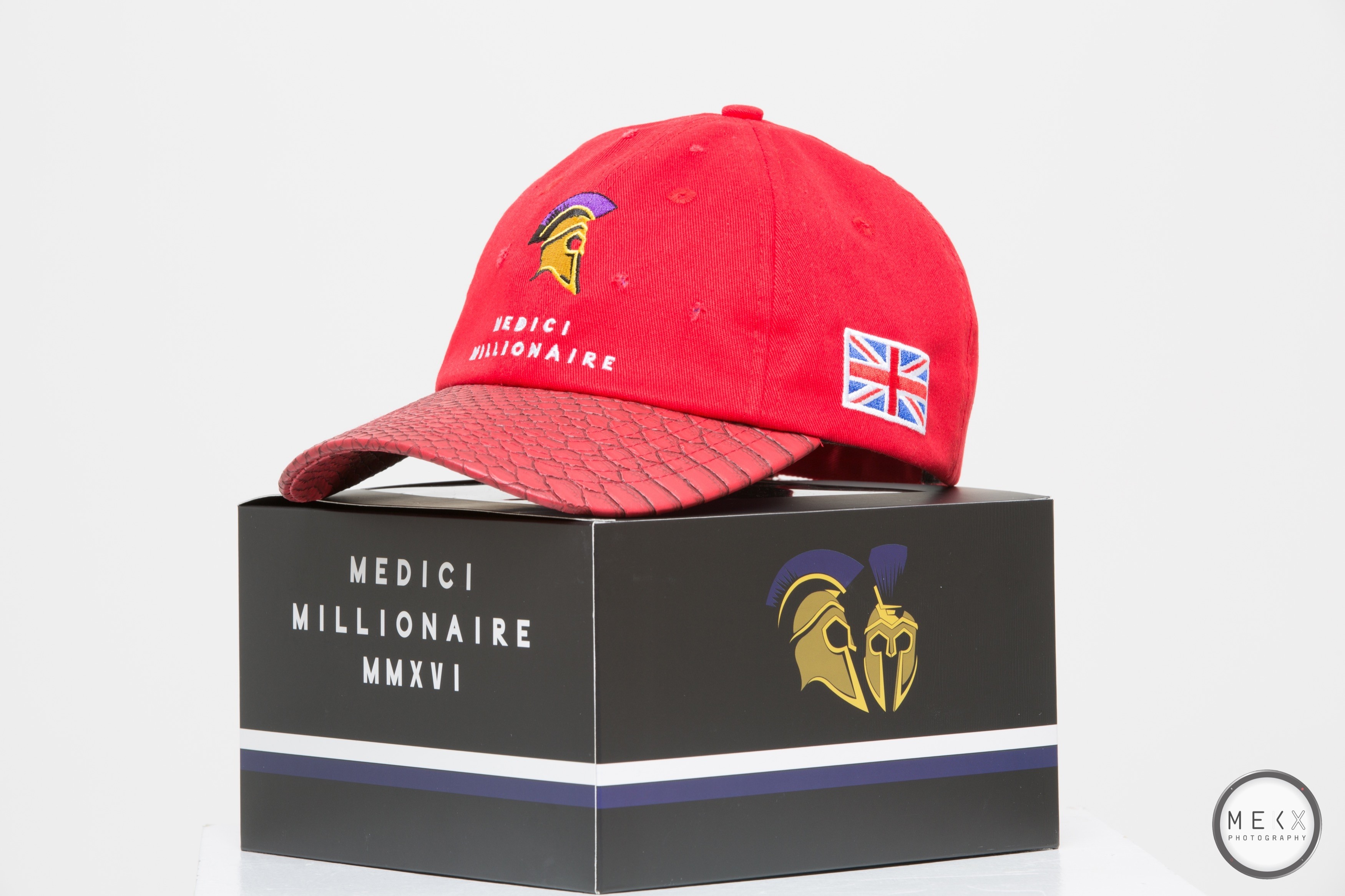 This cap is made from 100% cotton and features the Medici Millionaire Logo embroidered onto face of the cap.The peak is finished with red python snake skin and the inside finished with our signature purple satin for a comfortable fit. * Limited Edition * Model is wearing a one size fits all. * Produced in the United Kingdom.