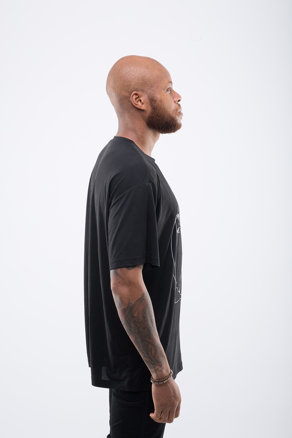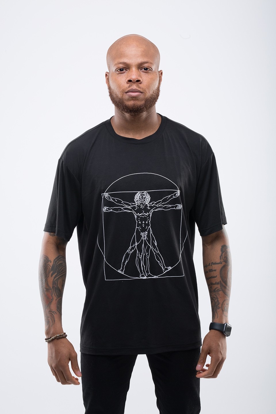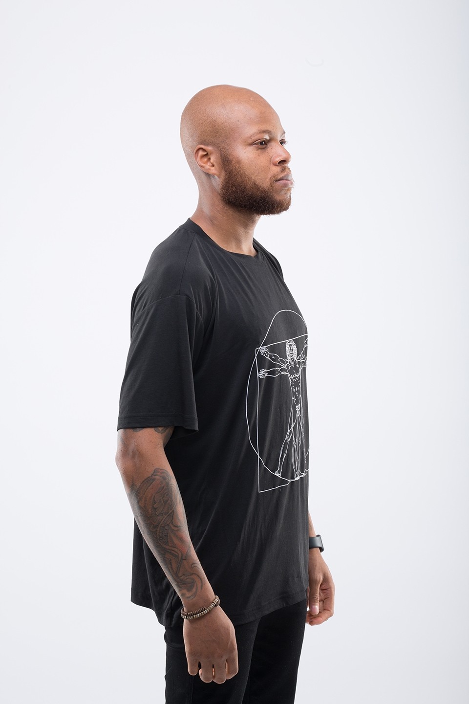 Oversized T-shirt with Vitruvian Man print. - Model is 6ft1 wearing a size large. *Oversized relaxed fit *Vitruvian Man graphic print